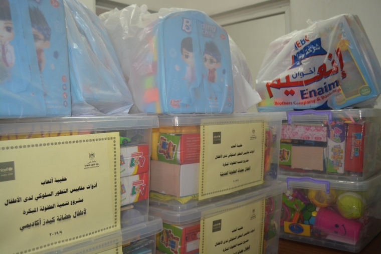 وزعت وزارة التنمية الاجتماعية ممثلة بوحدة الأسرة والطفولة قسم الطفولة المبكرة صباح اليوم حقائب ألعاب مقاييس التطور السلوكي لدى أطفال الحضانات المرخصة , وذلك ضمن مشروع تمنية الطفولة المبكرة لدى أطفال الحضانات الذي تم تنفيذه بالتعاون مع منظمة اليونسيف العالمية , بحضور مدير عام العلاقات العامة والإعلام د. حسام الدجني , ورئيس قسم الطفولة المبكرة في الوزارة أ. منال عدوان